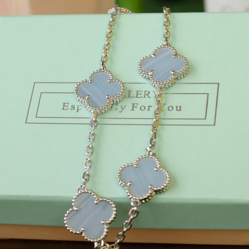Baby Blue Silver V Multiple Necklace
